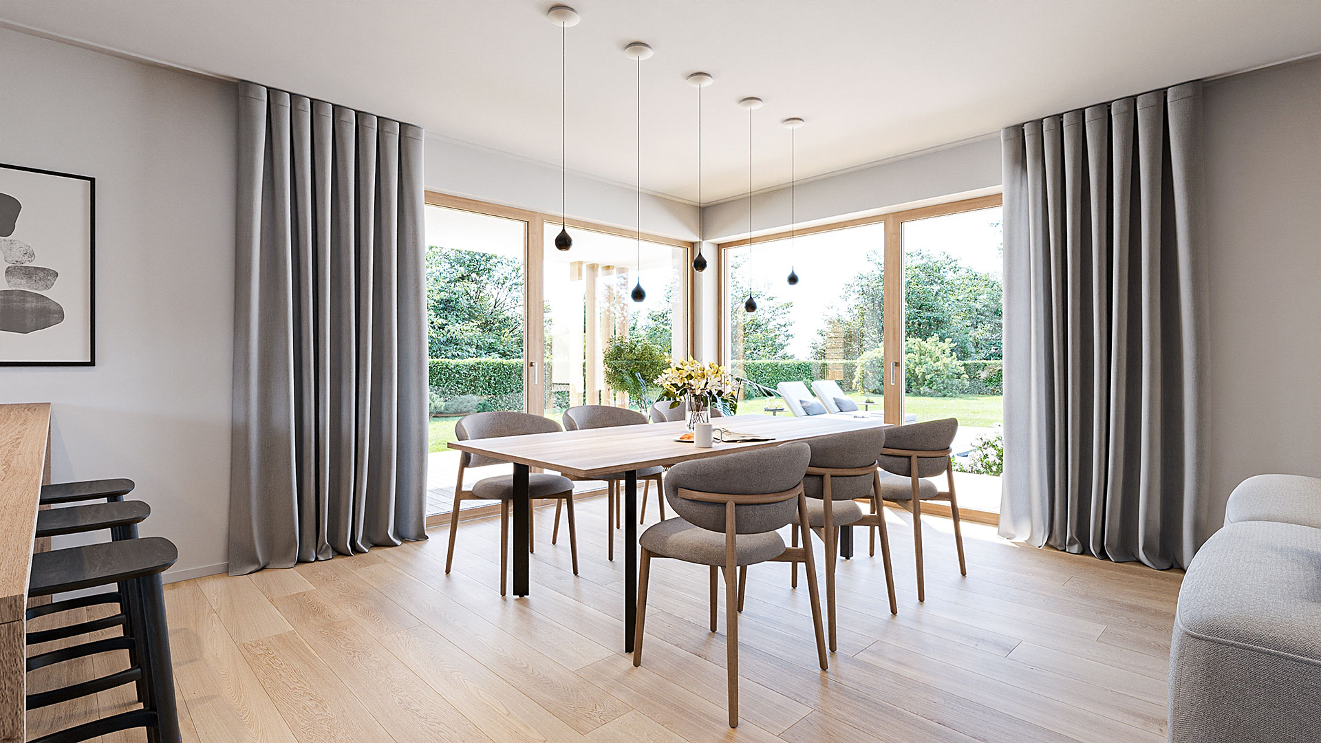 Vivus curtains gently filter natural light, creating a warm and inviting atmosphere.